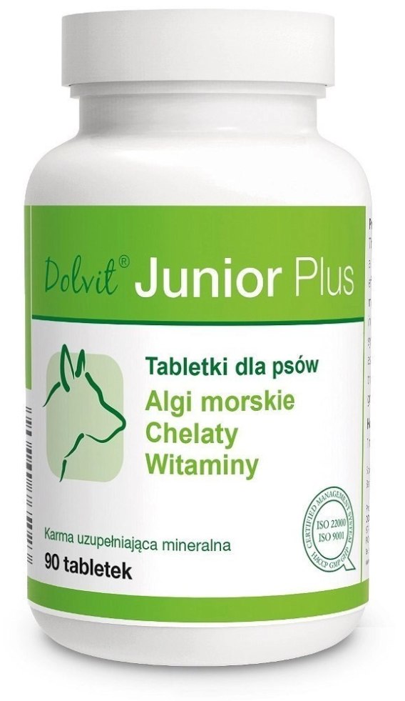 Tabletki dla szczeniąt i młodych psów. Karma uzupełniająca mineralna. Dolvit Junior Plus to preparat witaminowo-mineralny zalecany do stosowania przez cały okres wzrostu szczeniąt, począwszy od 3 tygodnia życia.