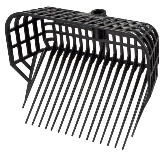 Z widłami Maxi firmy Kerbl o koszykowej konstrukcji z dużą pojemnością, sprawi, że oczyszczanie z gnoju stajni przebiegnie o wiele szybciej w porównaniu do tradycyjnych, płaskich wideł.