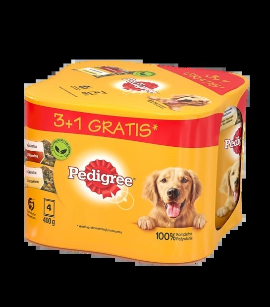 PEDIGREE Adult 3+1 z Wołowiną i z Kurczakiem w Galaretce to bogaty w składniki naturalnego pochodzenia pokarm, który w pełni zaspokoi potrzeby dorosłych psów. Pupile odkryją w nim delikatne mięsiste kawałki i składniki, które są źródłem m.in. białka, kwasów Omega-6, witaminy D3 i E. Specjalna formuła zapewnia psu kompletne i zbilansowane pożywienie, zawierające wszystko, czego potrzebuje. Dzięki niej Twój towarzysz zachowa zdrową energię i dobre samopoczucie. Wybierając jedzenie PEDIGREE serwujesz psu wysokiej jakości posiłek, który smakuje i pachnie wyśmienicie. Dobre trawienie - Naturalny błonnik pomaga zachować zdrowy układ trawienny, by pies zawsze czuł się jak najlepiej. Zdrowa skóra i sierść - Cynk i olej słonecznikowy, zawierający kwasy Omega-6, wspierają zdrowie skóry i piękną sierść. Naturalne mechanizmy obronne - Witamina E oraz substancje mineralne troszczą się o silne, naturalne mechanizmy obronne.